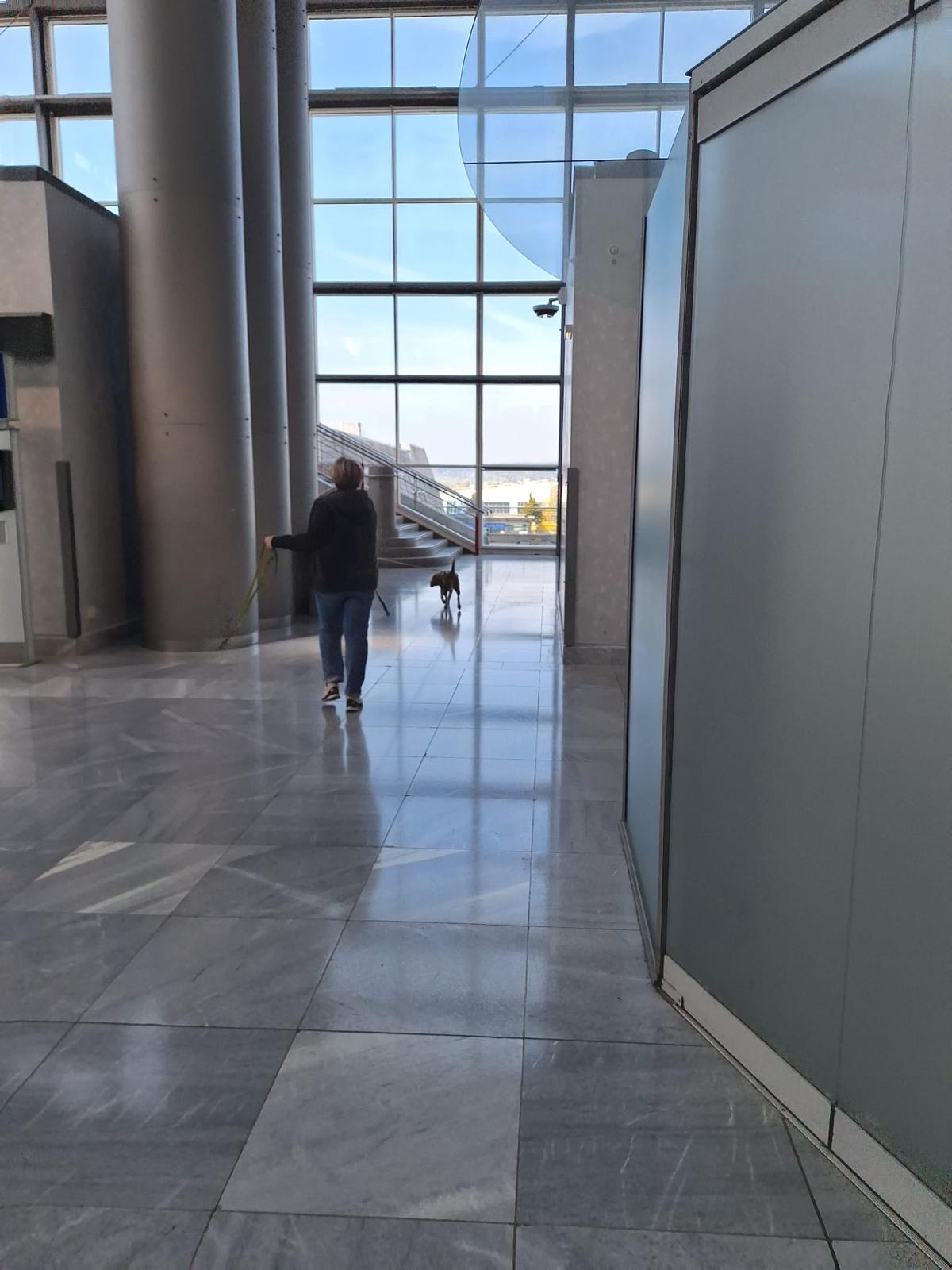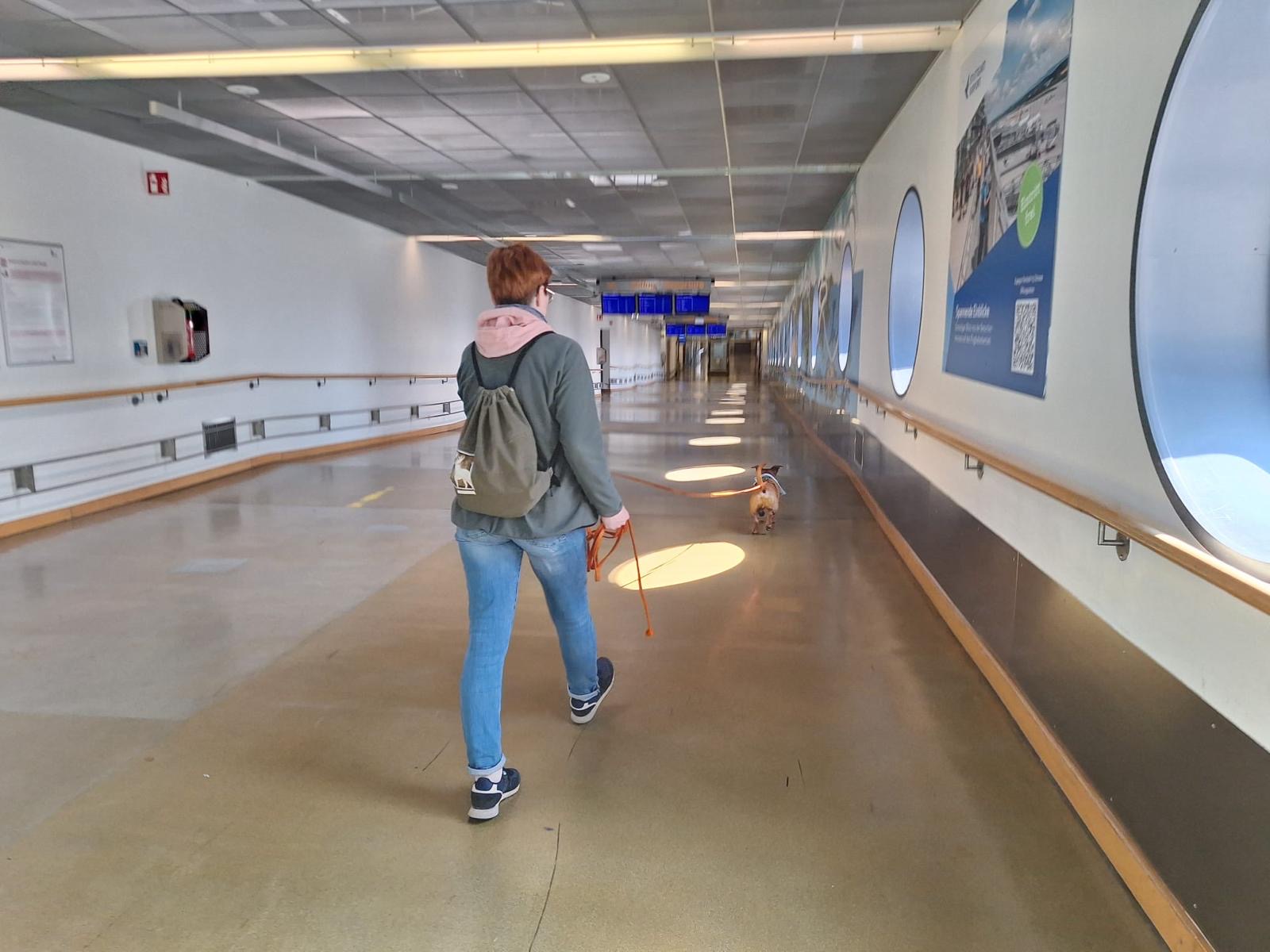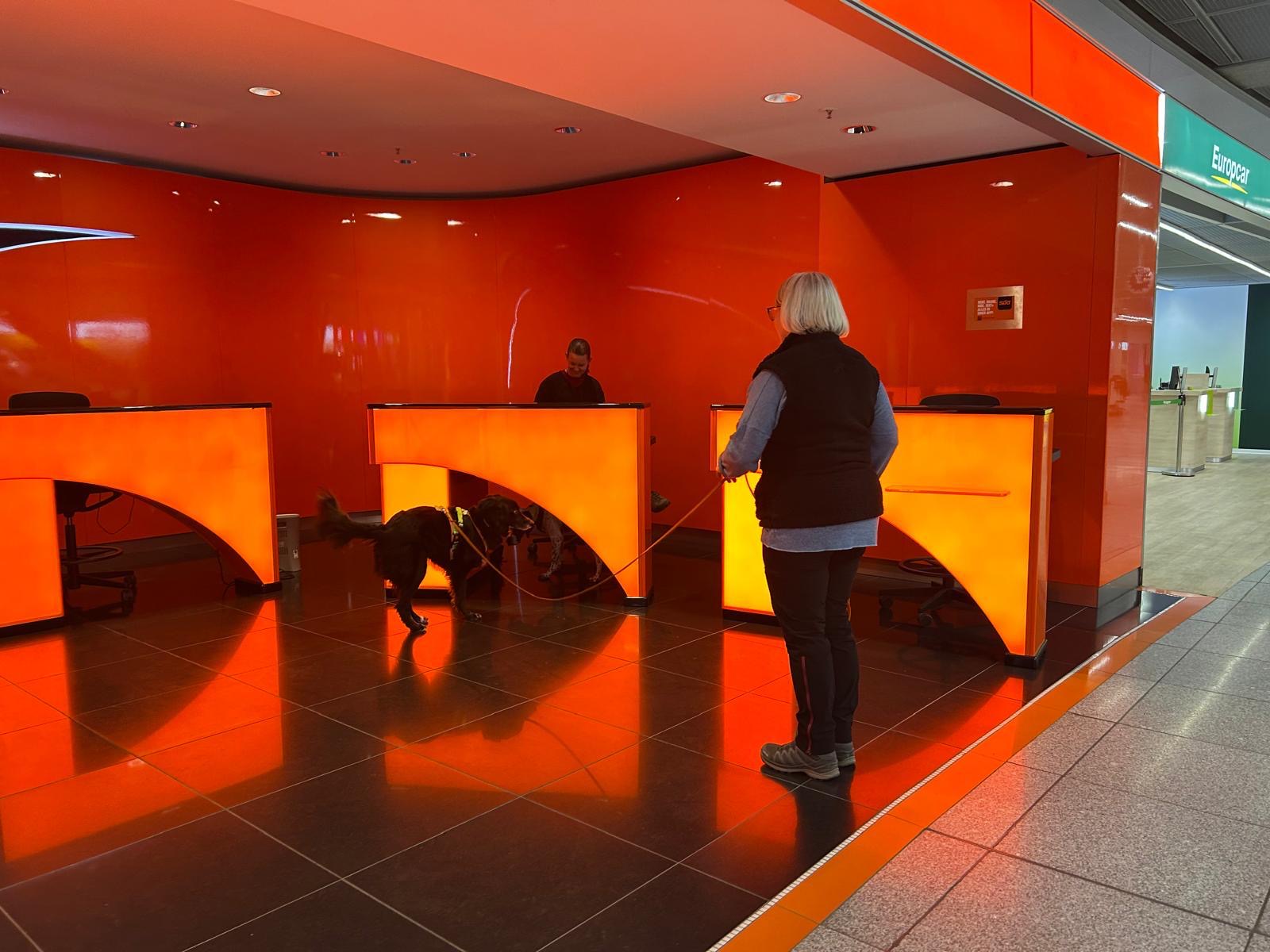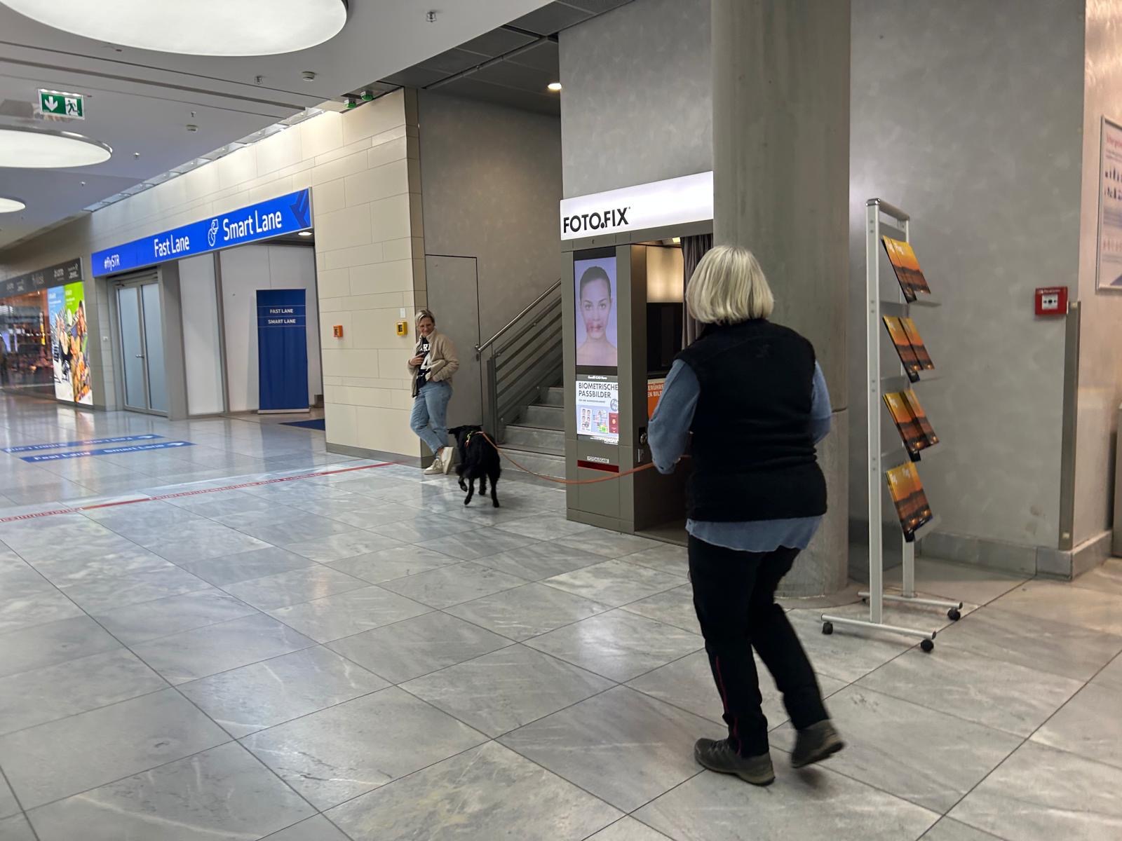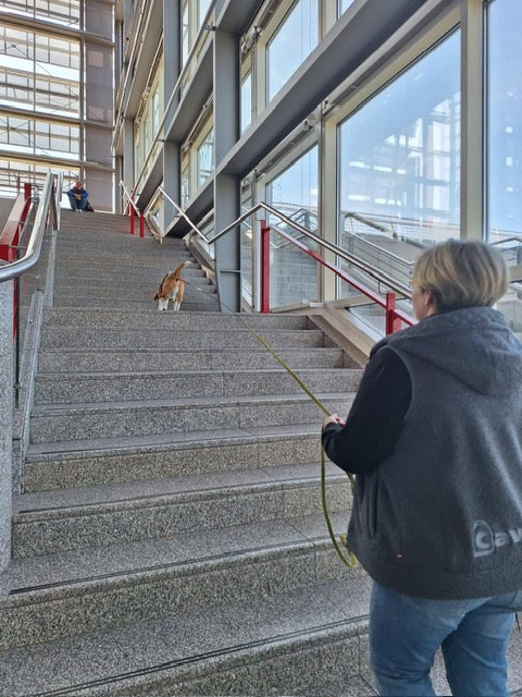 Der Flughafen bot eine Vielzahl unterschiedlicher Untergründe und Reize: von glatten Böden in den Gebäuden bis hin zu belebten Bereichen mit hohem Personenaufkommen. Gerade diese Vielfalt macht das Taining wertvoll, da die Hunde lernen konnten, sich auch unter schwierigen Bedingungen auf ihre Nasenarbeit zu konzentrieren.