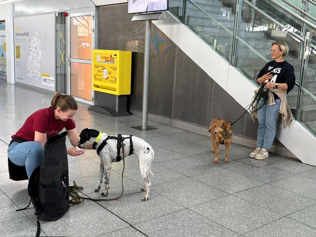 Geräusche wie startende Flugzeuge, Durchsagen und das Rollen von Gepäckwagen sorgten zunächst für Ablenkung. Doch bereits nach kurzer Zeit zeigte sich, wie gut die Hunde in der Lage waren, sich auf ihre Aufgabe zu fokussieren.