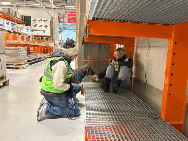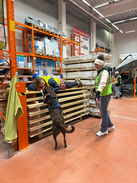 Zwischen Badewanne, Duschkabine und Blumenerde liefen unsere Trails. Die Hunde ließen sich nicht ablenken und folgten konzentriert jeder Spur. Ein kurzes, aber starkes Training – mitten im Trubel und trotzdem als Team auf den Punkt.