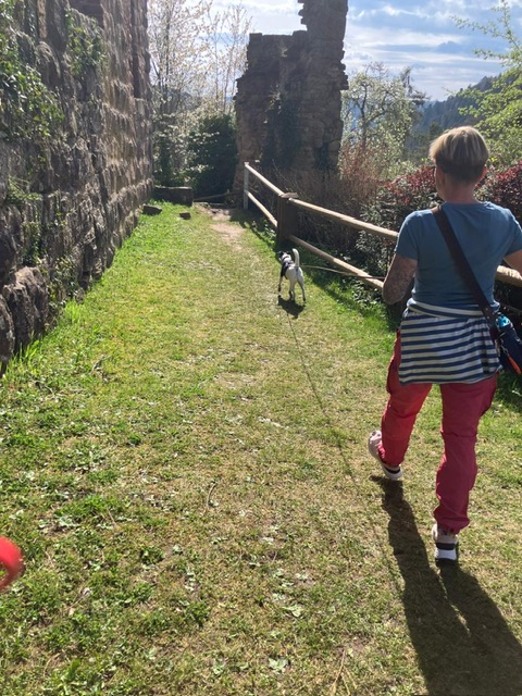 Kaiserwetter, entspannte Hunde und Menschen, Trails in Wald, Feld und auf der Burg, tolle Aussicht, Eis und am Ende ein Vesper und kühles Getränk im Wanderheim. Wer vermisst da noch die Krokusblüte….?